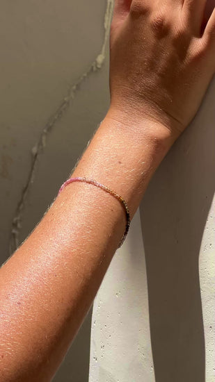 Reimagining the ancient practice of wearing beaded jewellery, a sacred act worn by our ancestors for protection and healing. Our Watermelon Tourmaline 'Spirit' Bracelet is created from hand picked, ethically sourced aquamarine intentionally hand strung on silk the perfect accompaniment for your Dharma Crystal Charm or wear powerfully on its own.
